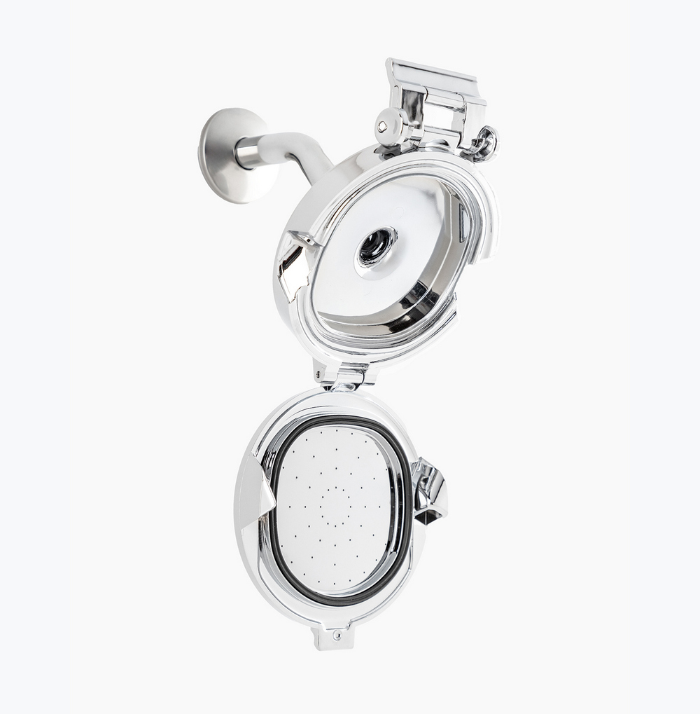 Flip-Open Showerhead Eliminates Hidden Bathroom Breeding Ground for Mold, Bacteria