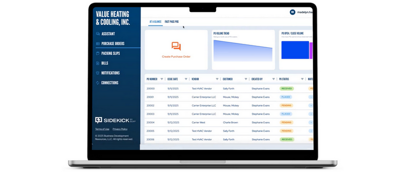 • Accessible on multiple devices. Sidekick gives businesses the flexibility to generate purchase orders and invoices both from their computer as well as on the go from any mobile device.